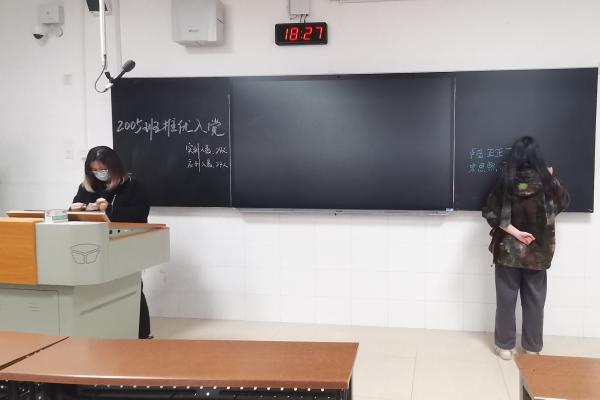 18时,唐徐婧在确定到场人数后,宣布了此次活动正式开始并介绍了此次活动的主要内容和目的。然后候选人宋恩熙、严晋依次进行自我陈述,唐徐婧组织2005班全体同学进行无记名投票,并对对两位候选人进行了有关党的相关知识的提问。提问结束后进行了现场唱票,并公布投票结果为宋恩熙12票,严晋10票。