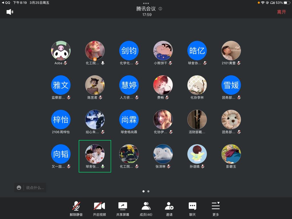 (通讯员 朱芷叶)3月25日晚8点,伟德国际1949学社管通过线上会议召开了线上例会。此次会议由学社管负责人曾丹主持,例会总结了三月工作成果并部署了四月的工作,各部门的部长和理事参加了此次例会。