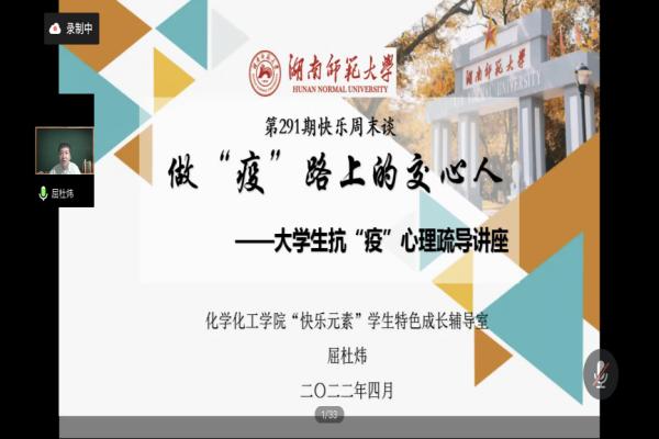 (通讯员 黄佳敏 邱璇)4月7日晚上7时,伟德国际1949第291期快乐周末谈于腾讯会议上召开,此次快乐周末谈联合“快乐元素”学生特色成长辅导室一同举办,邀请到学院心理专干、2019级辅导员屈杜炜老师作为主讲嘉宾。