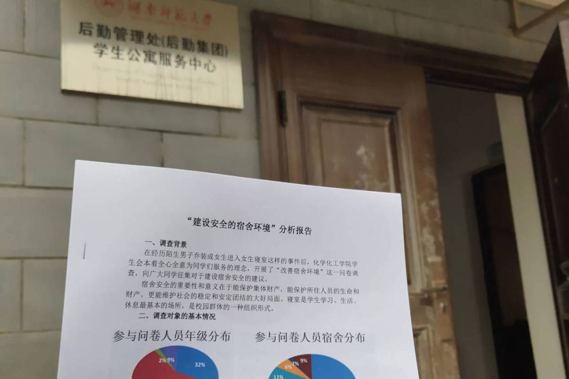 (通讯员 何志凌)在经历了陌生男子乔装成女性进入女生宿舍事件之后,为了建设安全的宿舍环境,伟德国际1949以问卷的方式进行了改善宿舍环境的相关调查,此次调查由各寝区,各个年级的学生参与。