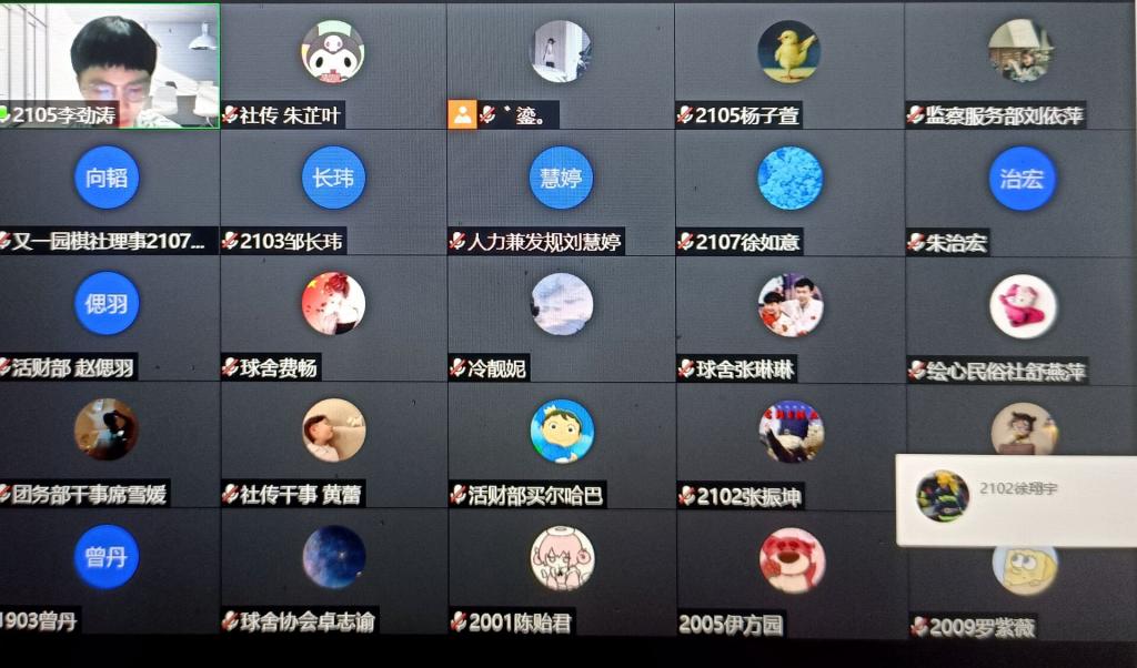 (通讯员 朱芷叶)4月15日19时,伟德国际1949学社管以线上方式开展了第二次学生干部述职大会,参加此次会议的有办公室负责人沈嘉琳和全体部门的第二负责人和干事,此次会议由沈嘉琳主持。