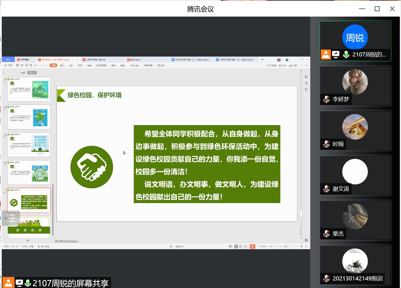 (通讯员 李娇梦)4月16日22时,伟德国际19492107团支部举行“绿色校园保护环境”团日活动,此次活动为线上模式,主讲人为班长周锐,2107班全体同学参与了此次活动。