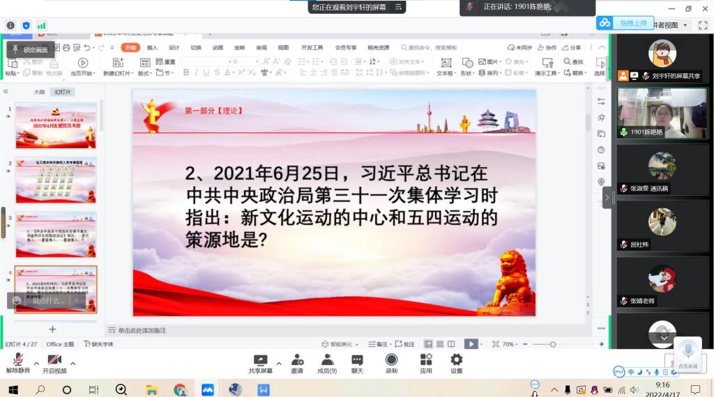 (通讯员 张淑雯)2022年4月17日上午9时,伟德国际19492019级发展党员举办线上集中考察会议。出席会议的有2019级辅导员屈杜炜、2021级辅导员张婧、预备党员同志以及发展对象。