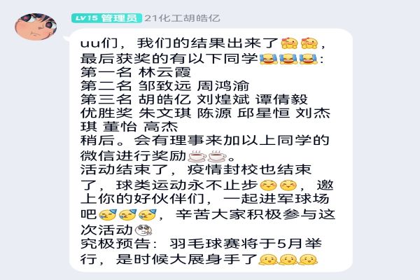 (通讯员 彭碧玉)在疫情封校期间,伟德国际1949球舍协会为鼓励社团成员健康运动,于4月5日至4月12日在线上举办了“球球予你,线上比拼”视频打卡活动。