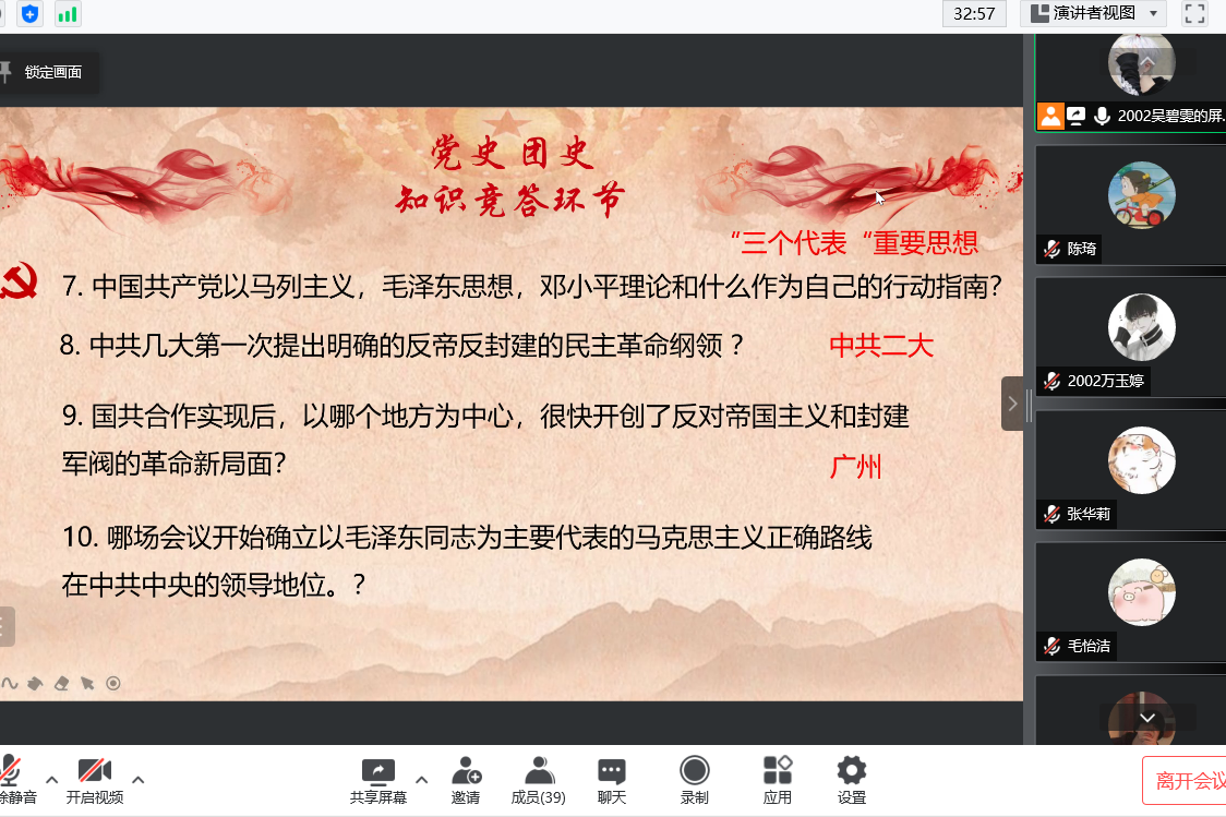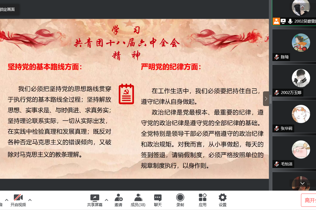 (通讯员 陈琦)2022年4月30日19时00分,伟德国际19492002班借助腾讯会议平台开展了线上春季理论创新活动。