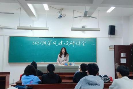 会上张婧对上学期期末考试及本学期期中考试成绩进行了分析与解读,对本年级学生学习方面存在的问题进行了总结,强调了大学里学习的重要性,提出了接下来的具体工作要求和工作安排,鼓励大家积极带领同学们开展学风建设活动。各班学委在会上探讨了21级学风建设方面存在的问题,并针对问题现象积极建言献策。