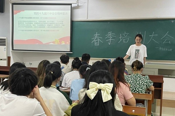 会议过程中,办公室干事黄怡婷对党的十九届六中全会精神和湖南省第十二次党代会精神进行了讲述,让学生会成员对于全会精神有了深刻的了解,并意识到作为当代青年,要以时代为己任,在新时代新征程上展现出青年一代的新气象、新作为。此后,学生会成员根据培训大会内容进行讨论,发表了自己的看法。