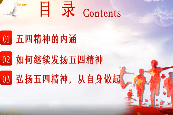 此次活动以线上PPT展示的形式开展。朱语涵为大家讲解了以中国共青团发展历史为主题的PPT,并组织同学们观看共青团相关的历史影片资料,进一步学习体会其深刻内涵。最后是同学们的自由交流环节,同学们就此次学习活动发表了自己的感想,并于活动结束后记录此次春季理论活动的心得体会。
