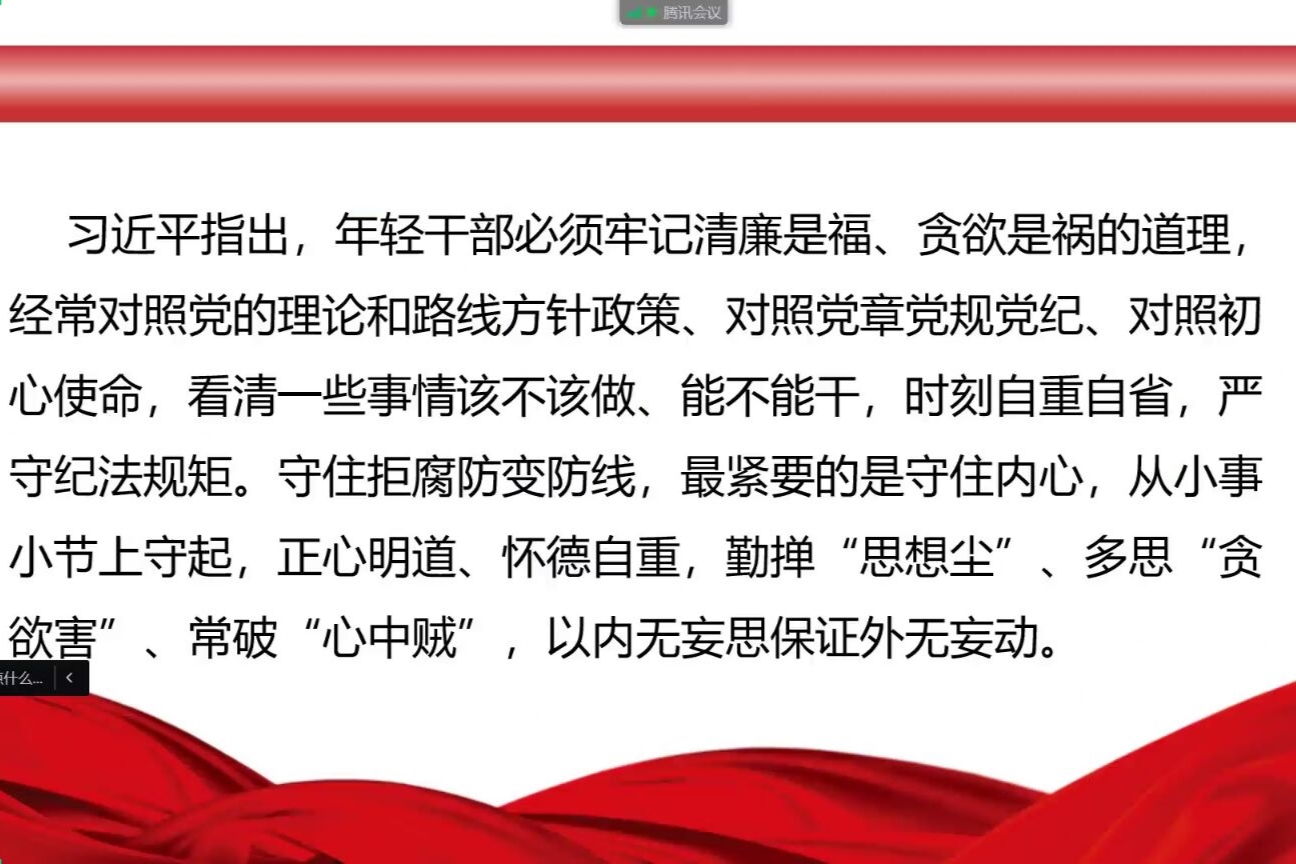 (通讯员 陈清华)5月19日12时30分,伟德国际1949青马支部12小组在腾讯会议开展了第四次小组活动。此次活动中,组长陈清华组织组员在线上会议中共同学习习近平总书记在中央党校中青年培训班开班仪式上重要讲话精神。以中青年干部培训为出发点,探索发掘当代青年干部在当今时代背景下应当如何作为,旨在学习新时代中国青年干部精神,培养党性提高自身道德文化修养和思想境界。