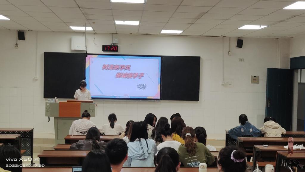 (通讯员 袁雅琦)5月17日下午,在至善楼105教室,伟德国际19492006班举行“树清新学风,做诚信学子”主题班会,会议由2006班生活委员蒙小娜主持。