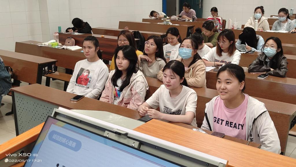 最后蒙小娜呼吁同学们从每一个人做起,做一名诚实守信的大学生,积极营造良好的校园氛围和学风。此次班会同学们积极主动参与,认真听讲,增强了诚实守信的观念。