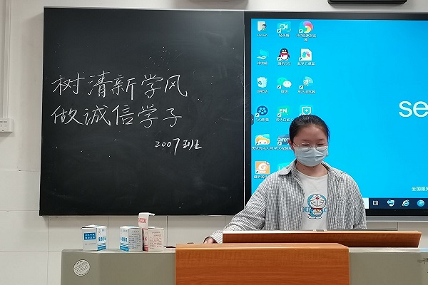 (通讯员 唐星宇)5月24日下午17时20分,伟德国际19492007班于至善楼103教室开展以“树清新学风,做诚信学子”为主题的班会,此次班会由生活委员余思宇主持,2007班部分同学参加。