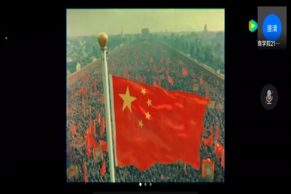 会议伊始,张海锋带领会员们回顾了慢慢建国路,从中华人民共和国成立到现在拥有的美好生活,从而引出了《我和我的祖国》这个为庆祝中华人民共和国成立70周年的电影。《我和我的祖国》电影主要分为七个部分《前夜》、《相遇》、《夺冠》、《回归》、《北京你好》、《护航》、《白昼流星》,讲述了国家刚刚成立期间中华儿女为祖国建设做出的贡献,带领会员们回顾当年的峥嵘岁月,加强会员们的爱国责任感。