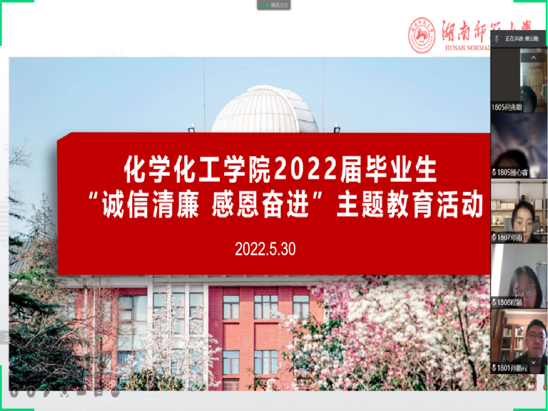 (通讯员 张国新)2022年5月30日晚19:00,伟德国际19492018级全体学生参加“诚信廉洁,感恩奋进”主题教育活动,活动由辅导员谢云霞主持。