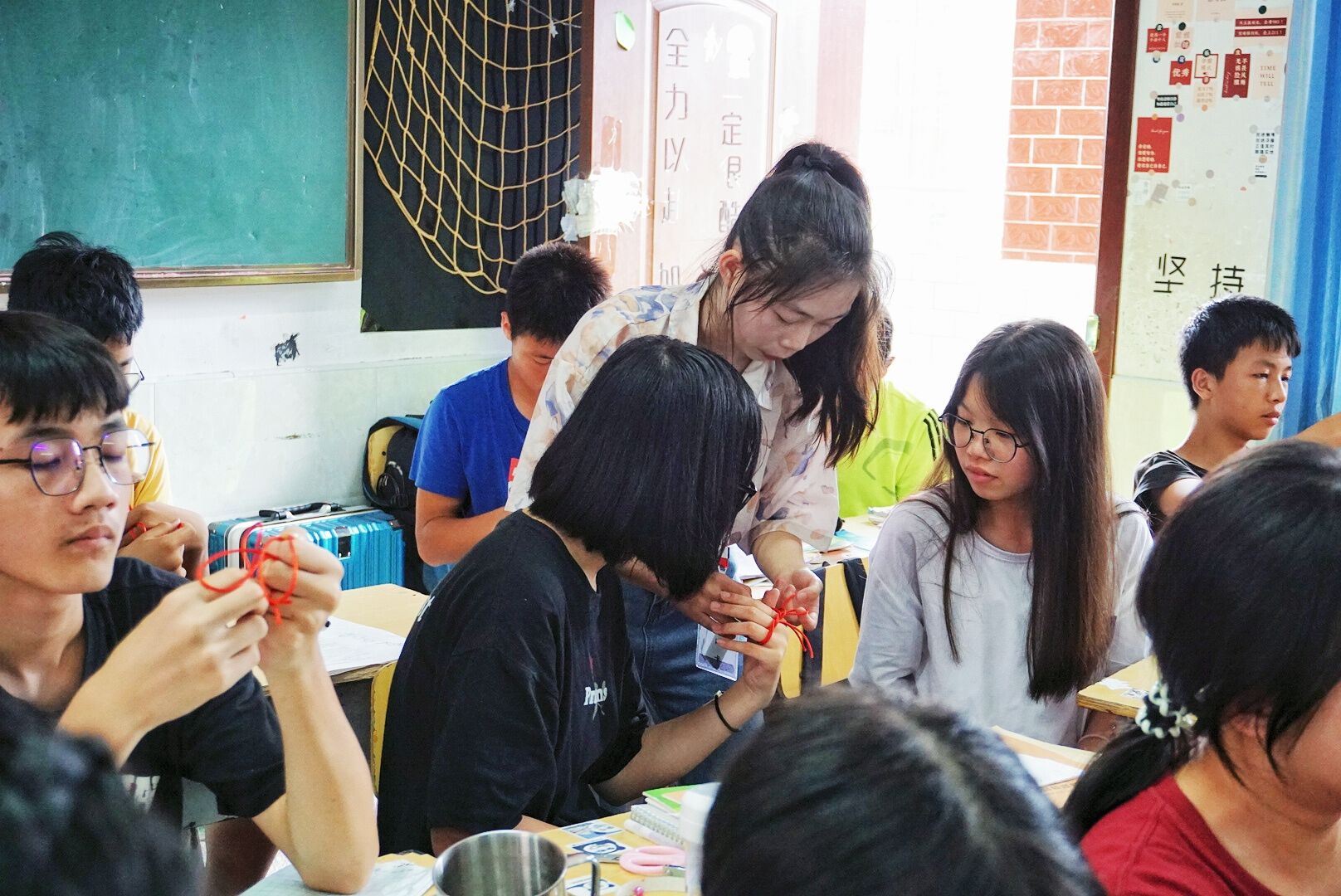 (通讯员 韦彩琳)7月2日13时50分伟德国际1949“蒲公英——把知识带去乡村”队在衡阳市祁东县启航学校初中教学楼4楼八年级30班开展“美工中国结”特色课程活动,由初中教学组成员陈琦主讲。