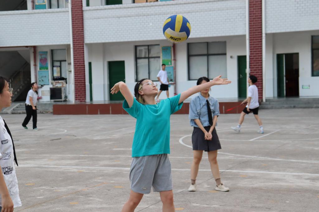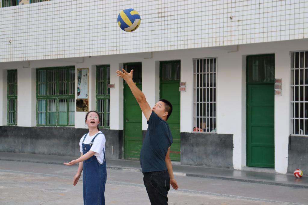 一场课后趣味排球比赛在落日余晖中拉开了序幕。双方分别是以谌球为代表的三人队伍和剩余三名队伍成员。谌球的精彩发球让每一位参赛成员提高了警惕,投入到这场比赛当中。同时,谌球亲自教队伍成员排球发球以及垫球手法,彰显了比赛“友谊第一”的精神。