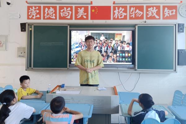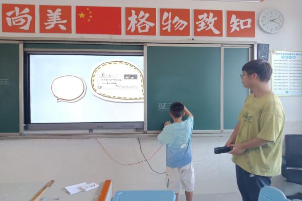 (通讯员 袁祥东)7月9日下午14时,为夯实学生英语学习的成果,伟德国际1949青春向“尚”队在衡阳市常宁市尚宇学校小学部三年级教室开展趣味英语字母课程的教学。英语老师袁祥东进行授课,助教晏紫霖和周雨婷辅助教学并维持课堂纪律。