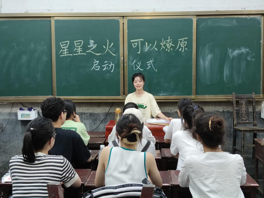 会议伊始,为了使队伍成员更加了解接下来的教学活动以及注意事项,队长邓星发表了重要讲话,表明做好学风建设、树立榜样精神等的重要意义。同时和队伍成员商讨了明天的工作计划,一是部署了具体的教学科目,二是各任课老师预备明天的教学计划。