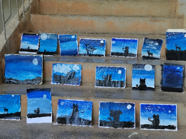 此次课程活动中学生积极回答老师提出的问题,让学生对绘画的构图有了一定的了解,掌握了绘画技巧,增加了学生对绘画的兴趣。
