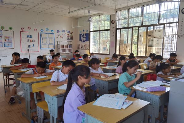 在作业辅导课上,黄老师让每一位学生将先前要求带到学校来的暑假作业或者其他课外作业拿出来并在课堂上认真写。在课堂中,每一位学生都是非常的专注认真,不讲小话,也不开小差。