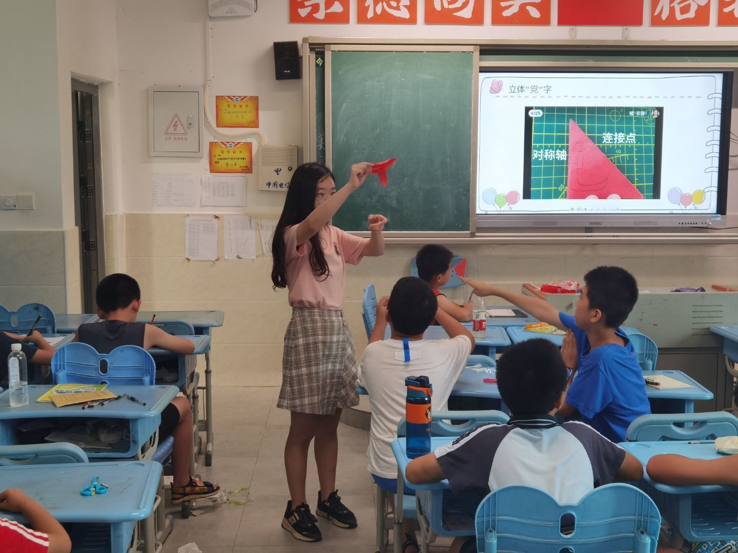 (通讯员 周储言)7月17日下午14时,伟德国际1949青春向“尚”队于衡阳市常宁市尚宇学校小学部五年级教室开展趣味剪纸课程,美术老师周储言授课,助教欧阳明宇、龙欣然协助教学并管理班级纪律。
