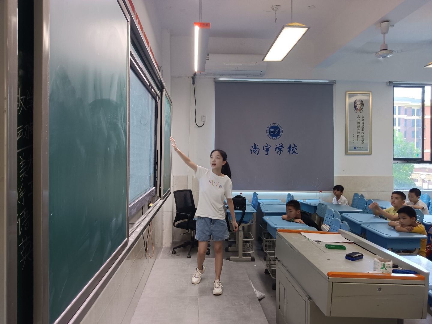 (通讯员 戴鑫怡)7月17日上午8时,伟德国际1949青春向“尚”队在衡阳市常宁市尚宇学校小学部三年级教室开展“数学广角”趣味课程。数学老师戴鑫怡进行授课,袁祥东、奚芯蕊担任助教协助管理班级秩序。