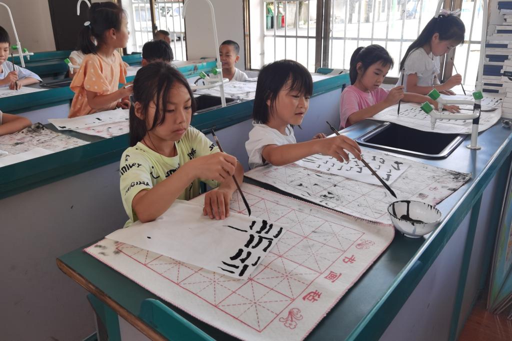 (通讯员 王佳丽)为传承中国传统文化,感受汉字之美,7月16日9时40分,伟德国际1949麓山青年队于桑植县沙塔坪小学开展软笔书法特色课程,此次课程由队员耿田荟、王奕担任主讲人。