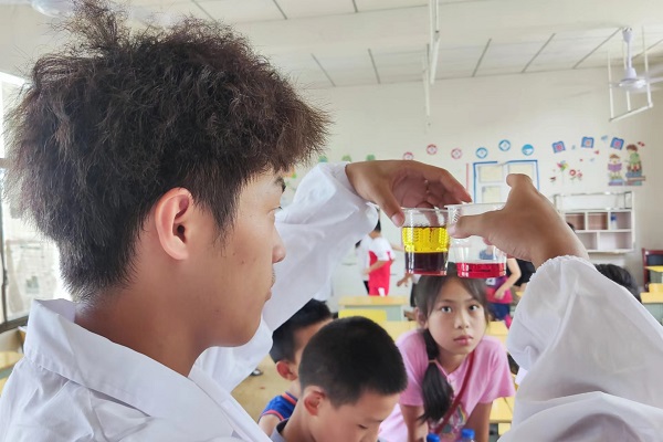 (通讯员 王奕)7月19日下午15时,为突出化学特色,展现化学风采,传播化学知识,让学生从趣味中学习,从实验中剖析化学知识。伟德国际1949“麓山青年”队于张家界市桑植县沙塔坪级小学开展趣味实验课程,该课程由唐彬、何麟授课。
