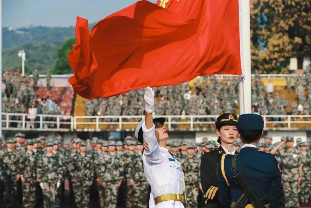 升国旗奏唱国歌,化工院2022级326名新生岿然挺立,肃然起敬。