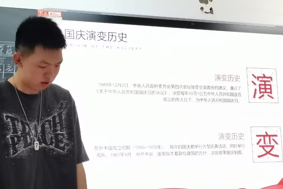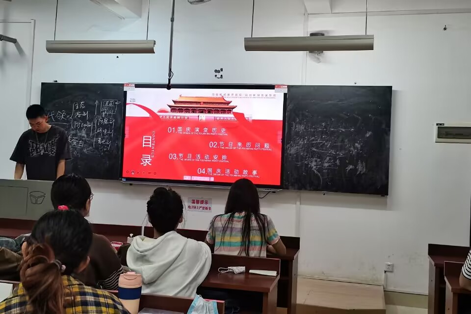 活动伊始,赵一阳指明此次团日活动的目的在于庆祝中华人民共和国成立73周年,进一步激发同学们的爱国热情,增强民族自尊心,自信心和自豪感。随后,赵一阳为同学们详细介绍了国庆的演变历史、解答了国庆节的来历问题。最后是自由环节,同学们互相分享对于国庆节的理解、在国庆假期经历的趣事、印象深刻的国庆阅兵式等内容。