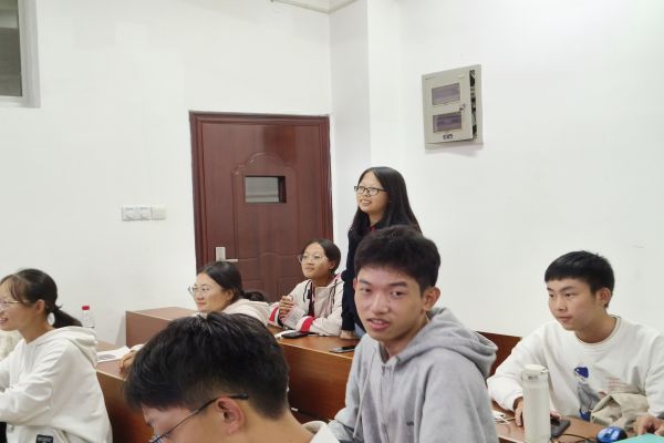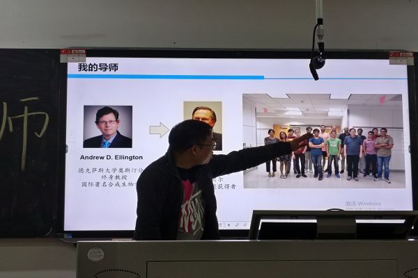熊二虎让同学们进行自我介绍,拉进了与同学们之间的距离。熊二虎在自我介绍的同时也介绍了自己所在的分子识别与光学传感实验室,主要讲述了该团队的研究方向与科研条件。此次活动的主要目的是为同学们解疑答惑,因此,熊二虎从学习、工作及生活三个方面解答了同学们提出的问题。此外,熊二虎还为同学们介绍了出国留学途径及申请过程,同时介绍了自己的留学经历。最后,熊二虎向同学们提出建议,发出呼吁。活动期间,同学们兴致高涨,积极与熊二虎互动。