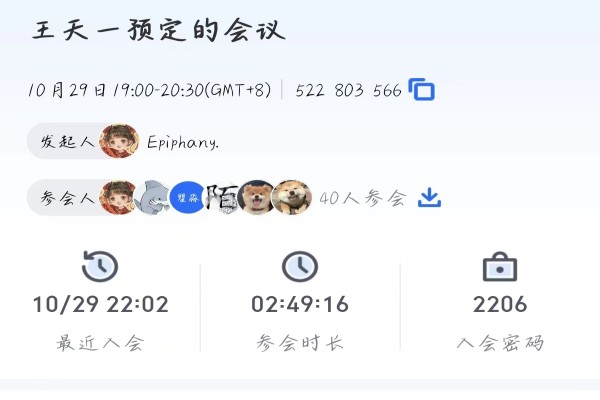 经过见面会前期流程安排,会议有序进行。会议中,杜邵龙向2206班全体同学做了简单的介绍及个人经历,同学依次进行自我介绍并提出近期遇见的问题,杜邵龙依次给予详细解答及鼓励,并为同学们今后的学习生活提出几点建议,例如多运动,合理膳食,早睡早起,专注学习,积极参加活动,发展兴趣爱好等。会议结束后,2206班心理委员王天一与班导师杜绍龙商讨了后续的线下见面会时间及相关班委工作的推进方法。