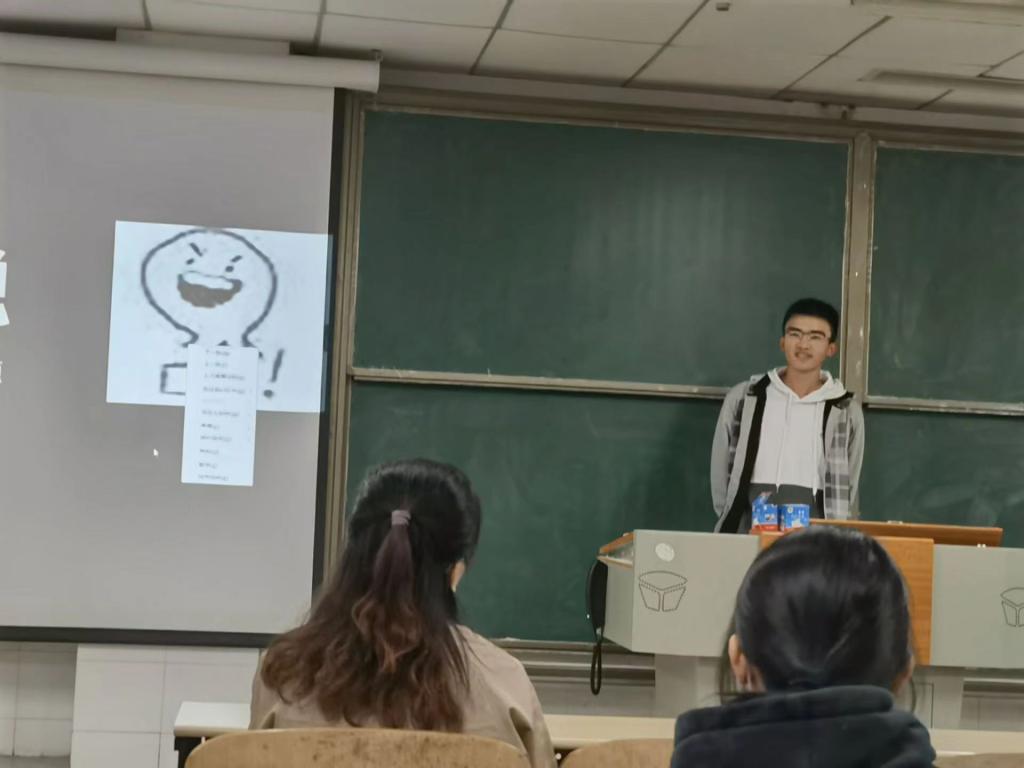 心理委员宋欣宜用ppt的形式向陈超展现了2201班在军训期间的班级风采,同时用随机抽取同学自我介绍的形式让陈超与2201班全体同学有了沟通交流的机会。陈超在会议上发表了个人对化学专业的认识,分享了个人的学习经验和方法以及同学们该如何去学习化学等必修课。通过答疑的方式,陈超为同学解答了专业难度和学习方向等问题,实现了面对面交流。