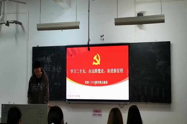 (通讯员 赵一阳)11月16日下午5时15分,伟德国际19492008班于化工院210教室开展主题为学习二十大,永远跟党走,奋进新征程主题团日活动,此次活动由2008班团支书赵一阳主持,2008班全员参与。