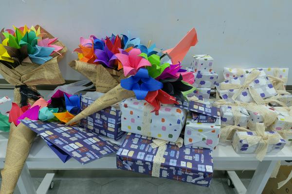 此次活动邀请了班导王贺雷和金佳会一同参与,旨在感谢两位在军训期间对化工院2203班全体同学的照顾。在活动后期,由范俊给两位班导献上同学们手工制作的写满祝福的纸质花,以及礼物。