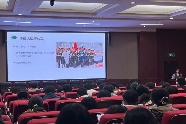 此次军事理论课由化工院2022级辅导员谢云霞主持开展,课程主要向22级同学们介绍中国国防、军事思想及国家安全等方面的基本军事理论。此次课程的设立,主要目的是使同学们认知国情,加强同学们的国防观念,提升同学们的国家安全意识,强化同学们的爱国主义观念。