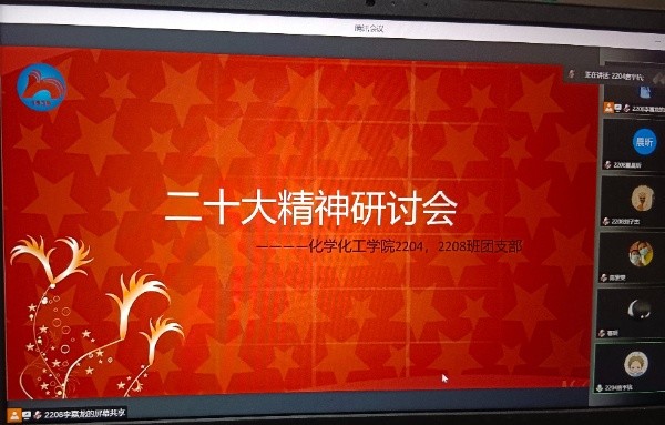 (通讯员 夏晨昕)12月6日下午4时30分,伟德国际19492204班和2208班全体成员在线上参加了二十大学习研讨会。此次活动由化工院2204班宣传委员唐宇杭和化工院2208班宣传委员李嘉龙主持进行。