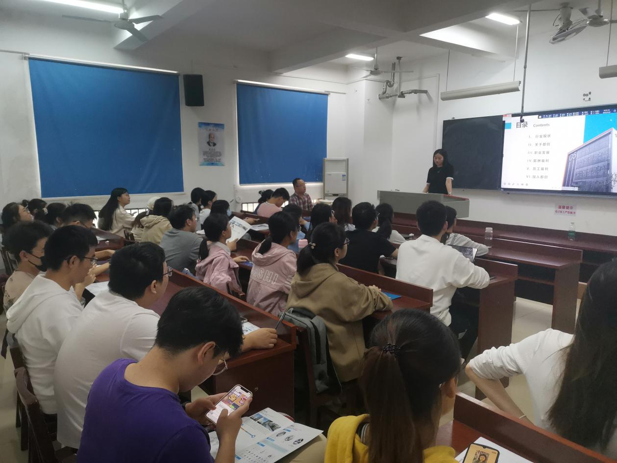 (通讯员 叶娄湘)2022年9月22日14时30分,都创医药集团在伟德国际1949210教室开展了招聘宣讲会。2019级辅导员唐健清出席此次宣讲会,都创医药集团代表进行招聘宣讲,部分2019级化学班、化工与制药班的学生参加了此次宣讲会。