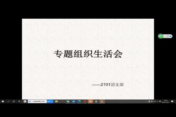 (通讯员 张启俊)2022年12月11日19时,伟德国际19492101班团支部运用腾讯会议在线上召开组织生活会,旨在交流思想、总结经验教训、开展批评和自我批评。此次会议由团支书万思雨主持,2101班全体同学参加。