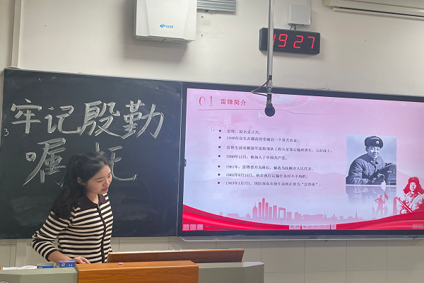 活动开始团支书简要概括本次活动举行的四个部分。介绍雷锋生平后,分别请同学朗读雷锋格言,感受雷锋精神。随后进入以“什么是雷锋精神”主题的班级讨论环节,同学自主描述心中的雷锋精神以及举例身边的“活雷锋”,发言后观看视频,了解什么是当代青年眼中的雷锋精神。此外,同学接力发言讲述雷锋事迹,学习榜样的优秀品格和优良作风。讲述雷锋事迹后,对于如何向雷锋学习同学们自主发言,明确活动主题,传承榜样精神。