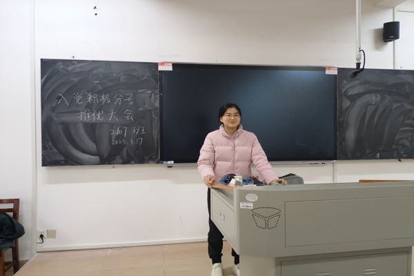 会议开始,陈秋吉向同学们简单介绍了参选入党积极分子的要求和成为入党积极分子的意义,并公布候选人名单,此次参与候选人共七人,分别是陈秋吉、陈欣欣、桑圣娟、徐美忆、刘思琪、孟思帆、王一晴。候选人依次上台发言,就个人情况、参选入党积极分子的目的和决心三个方面进行陈述。随后,由陈秋吉组织进行无记名民主投票、唱票、公布票数。最终按选票数量选出五人分别为陈秋吉、桑圣娟、徐美忆、刘思琪、陈欣欣。