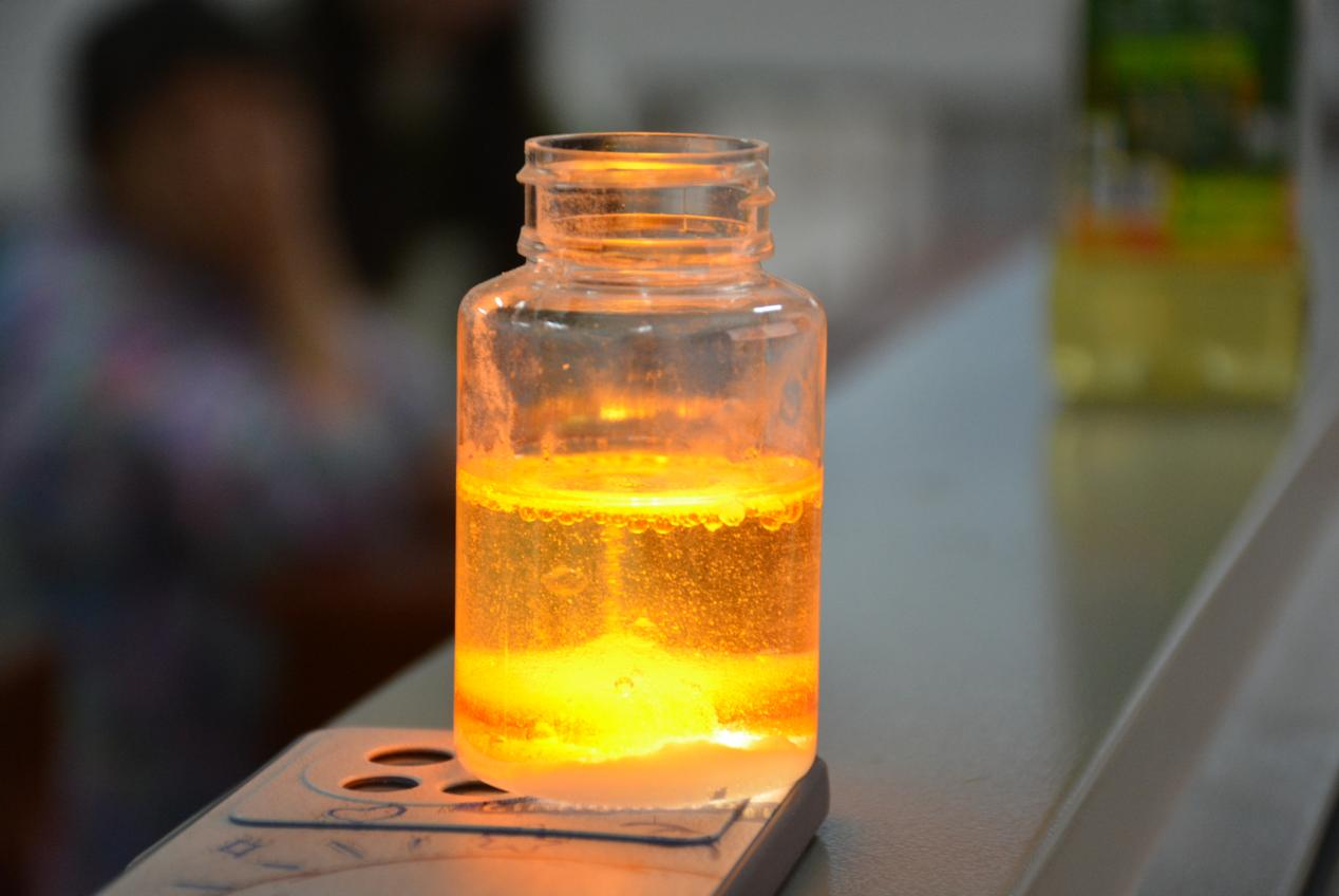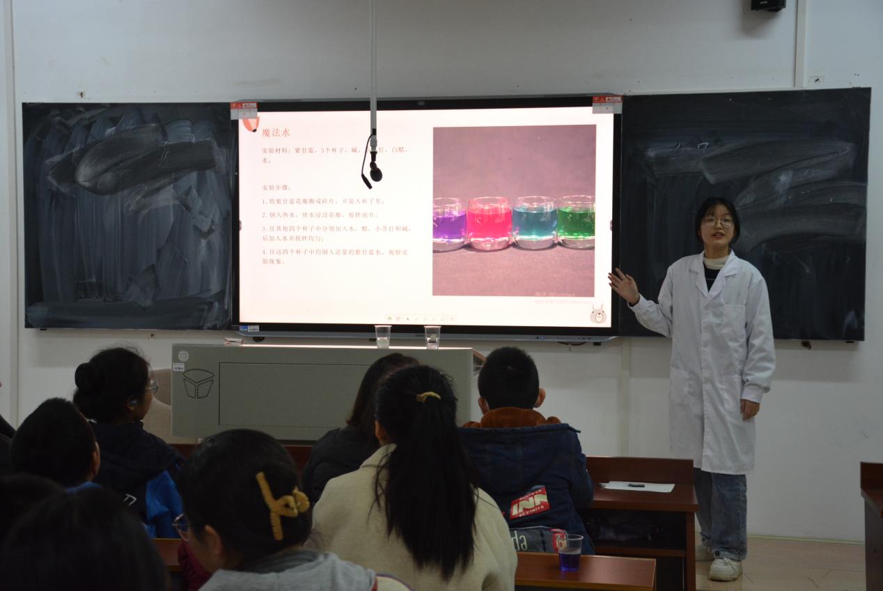 本次活动分为“化学知识小课堂”和“趣味化学实验”两部分。在“化学知识小课堂”环节,主讲人通过讲述生活中的化学现象,科普化学知识,打开了孩子们对化学的认识之门。在“趣味化学实验”环节,志愿者们一对一携同小朋友们开展了“淘气的小纸团”“熔岩灯”和“魔法水”等多个趣味化学实验。活动过程中,社区小朋友们在志愿者的帮助下亲身体验实验趣味,从而接受化学科普教育。