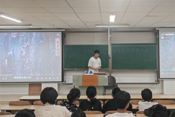 班级团支书首先向同学阐明此次团日活动主题,再从光明日报发布的缅怀英烈教育视频入手,向团支部成员们展现了中国近代以来的多次悲壮但伟大的反侵略的民主主义战争,以此为引激发同学们对英烈的缅怀与敬意,并在最后总结中结合国际现代近况,分析了在现代,青年们仍要向先烈看齐的伟大精神。