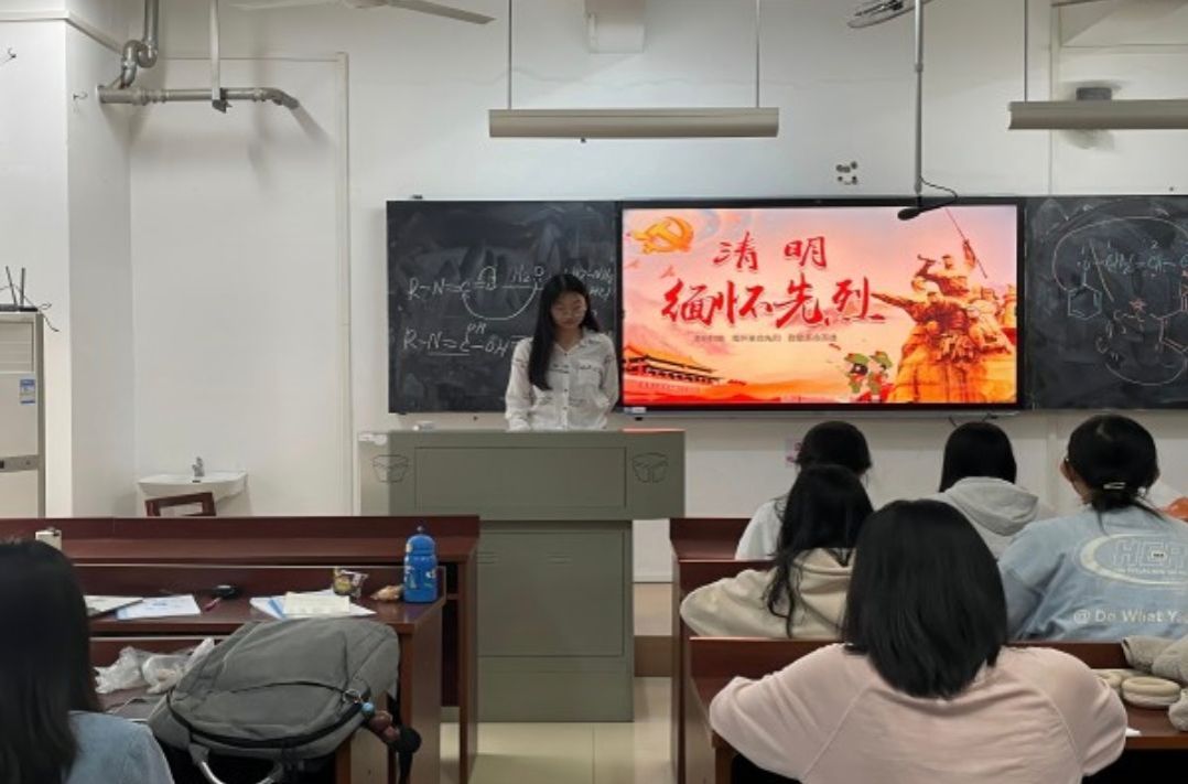 会议伊始,张泽琳向同学们介绍此次活动的开展目的、基本流程和开展意义,让同学们对此次活动有基本的认识。由清明节来源、习俗引入,从革命先烈的英雄事迹,爱国是奉献的源泉、奉献是爱国的实质和核心和东方明珠我的国四个方面进行讲解,层层递进,最后升华。此次活动旨在让同学们在清明节通过了解革命先烈的英雄事迹缅怀革命先烈,学习革命先烈的勇于奉献、不怕牺牲的精神。奉献是爱国的实质和核心,学习革命先烈的奉献精神,坚定每个人的爱国信念。