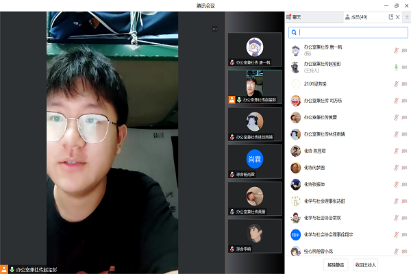 (通讯员 赵玺彭)4月18日中午12时30分,伟德国际1949学生社团管理服务中心于腾讯会议召开第二次学生干部述职大会,考核对象为各部门第二负责人、干事以及各社团副理事长、理事。本次大会由办公室兼社传干事赵玺彭主持,参会人员为学生社团管理服务中心全体成员。