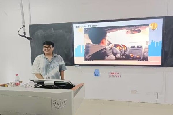班会开展之前,赵燚提前做好了充足的准备。赵燚以播放视频的形式让同学们了解交通事故发生的原因和事故的类型。宣传片《一盔一带》警示同学们平时骑电动车上路的时候要记得带好头盔,否则可能会造成很严重的后果。当然也提醒着驾驶员注意周围车辆的变化,危险来临时,要及时制动,远离危险。