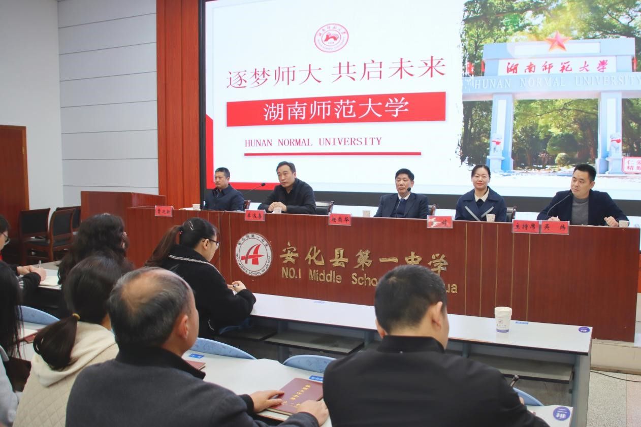 李远喜对杨荣华一行的到来表示热烈欢迎。他介绍了学校办学历史和近年来取得的办学成绩,表示学校师生将以本次交流为契机,进一步推动学校教育教学水平高质量发展,为更多学生顺利进入高校深造打下坚实基础,并向学院毕业生发出热情邀约,希望我院毕业生能积极参加应聘,来到安化一中施展专业技能,实现成才梦想。