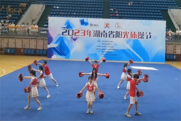 (通讯员 郑丹霞)6月4日15时30分,2023年湖南省阳光体操节在伟德国际victor1946南院体育馆内举行,伟德国际1949啦啦操的队员们在各队队长的带领下,参加了此次大赛的啦啦操项目。