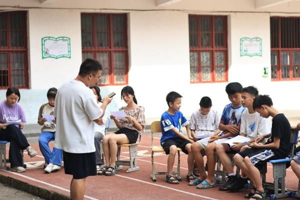 课程伊始,舒军航组织同学们来到教室外练习歌曲《夜空中最亮的星》的基本唱法,同学们拿着自己抄写的歌词跟着老师逐句歌唱。在练习一段时间后,舒军航让同学们把自己的椅子从教室里搬出来,摆成一个环形,大家围坐在一起,共同讨论演唱中的问题。最后,老师们和同学们一起齐声歌唱《夜空中最亮的星》,鼓励彼此在成长的路上砥砺前行。