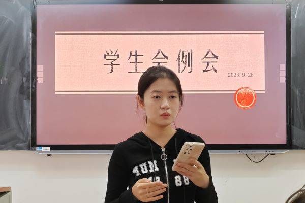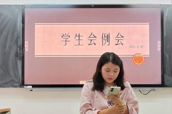 活动伊始,各部门依次上台总结本周工作情况。其中,办公室已完成第316期快乐周末谈的相关工作,校规校纪知识竞赛试卷已制作完成并转发至各班群;文体部已完成迎新晚会的策划;学发部已完成考勤微推制作和“我的专业第一书”的活动举办和总结;权益部已完成寝室评比的策划,资助宣传大使的材料已上交,新生建档通知已下发;宣传部已完成寝室风采展微推和第316期快乐周末谈微推的制作和发布;健服部已完成双十心理卫生节的初稿制作,正在进行趣味运动会的策划;主席团向各部门说明如果任务有问题需要及时反馈协商,注意任务的截止时间,并强调部门的工作要先通过部门审核,再发到学生会的群内审核。